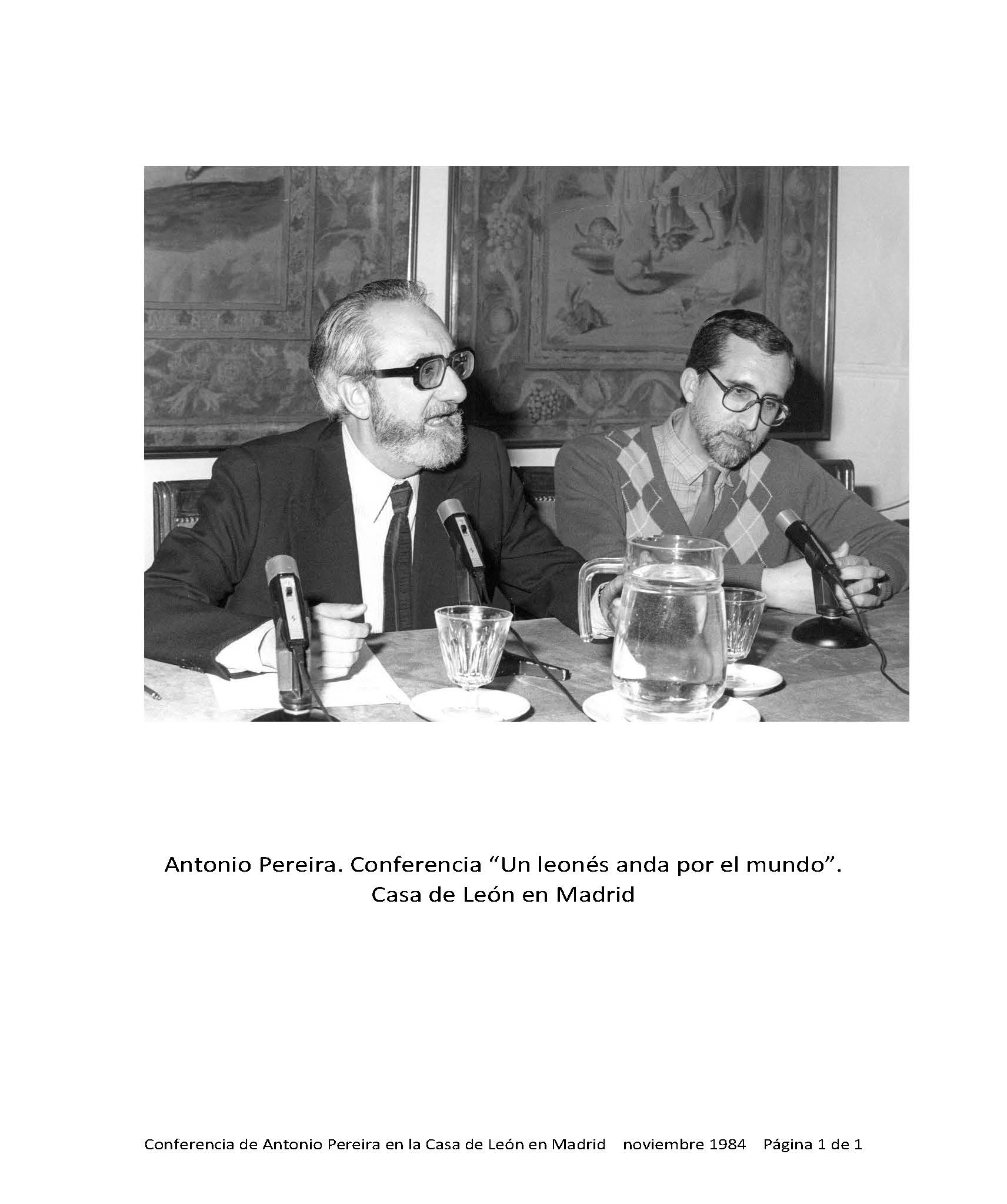 | dc.description | Con motivo de la charla que ofreció Pereira en la Casa de León titulada «Un leonés anda por el mundo» el 23 de noviembre de 1984 se obtuvo esta fotografía de Pereira con Luis Mateo Díez | |